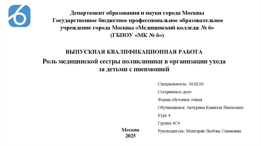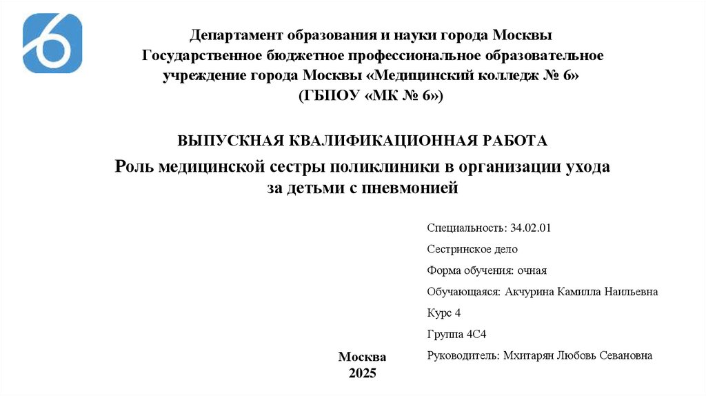 учреждение города Москвы «Медицинский колледж № 6»