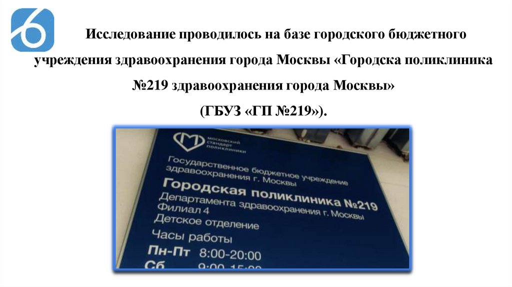 5. Исследование проводилось на базе городского бюджетного учреждения здравоохранения города Москвы «Городска поликлиника №219