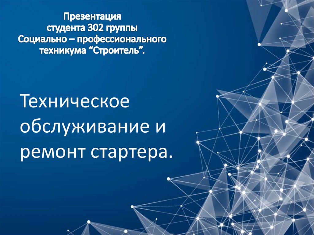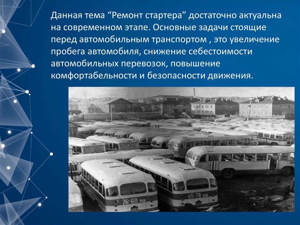 Данная тема “Ремонт стартера” достаточно актуальнана современном этапе. Основные задачи стоящие
