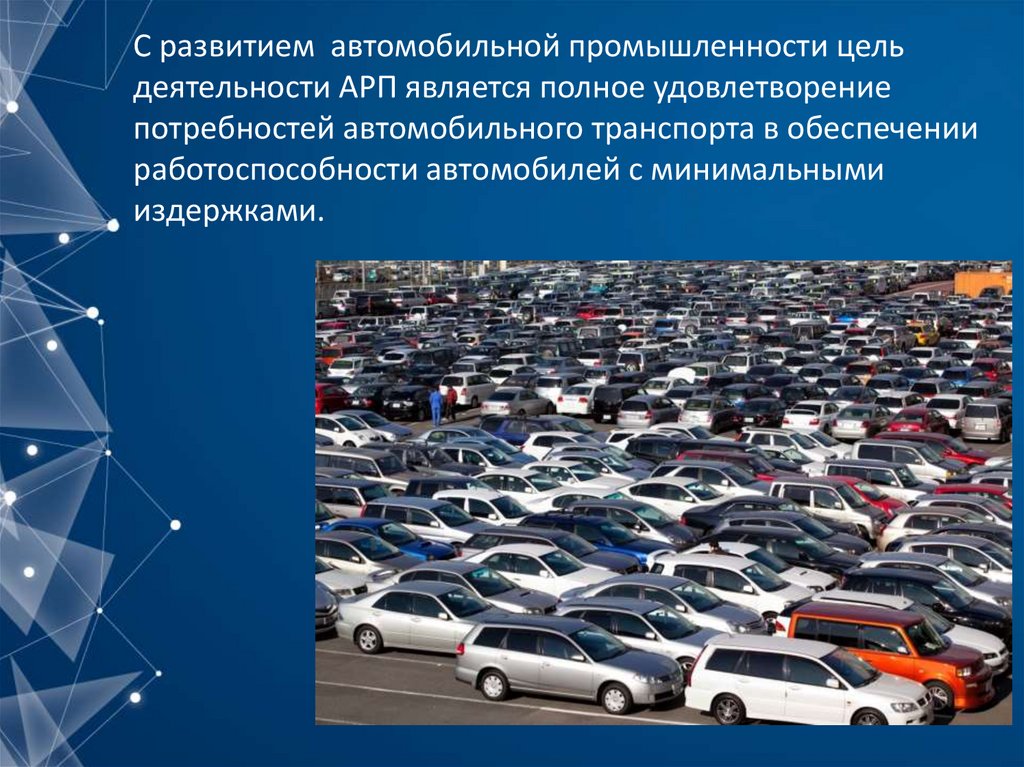 С развитием автомобильной промышленности цельдеятельности АРП является полное удовлетворение