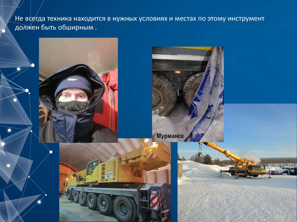 Не всегда техника находится в нужных условиях и местах по этому инструментдолжен быть обширным .