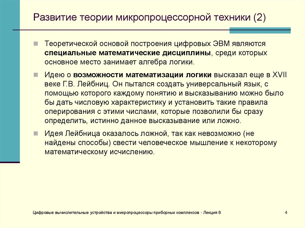 Теоретической основой построения цифровых ЭВМ являютсяспециальные математические дисциплины, среди которых