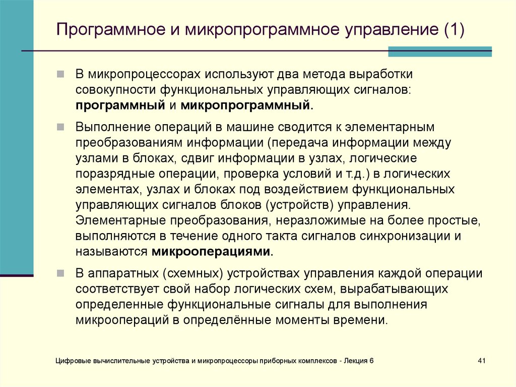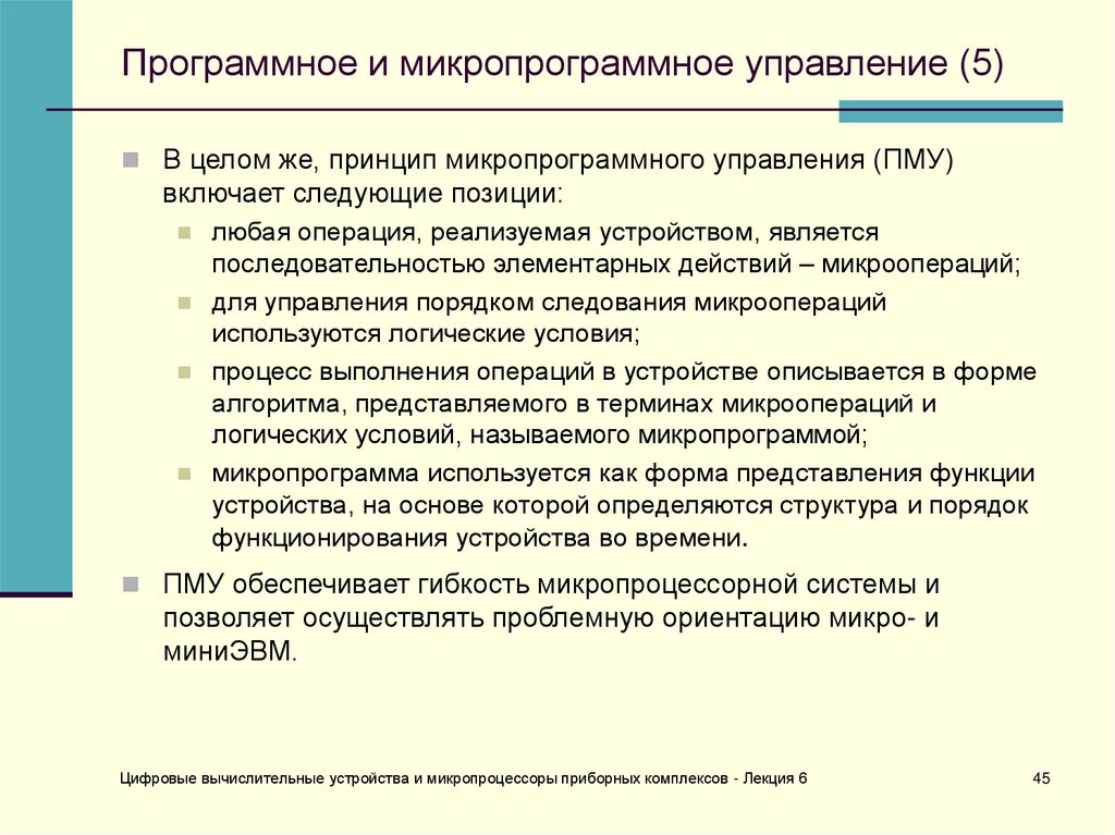 В целом же, принцип микропрограммного управления (ПМУ)включает следующие позиции: