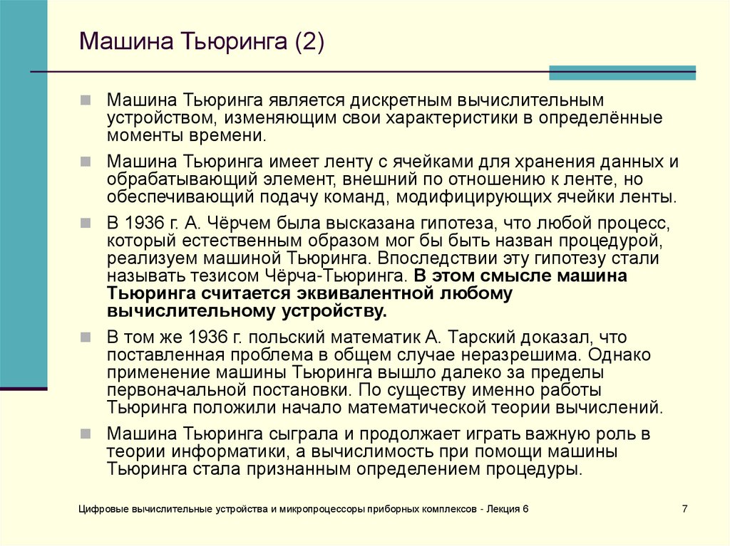 Машина Тьюринга сыграла и продолжает играть важную роль в