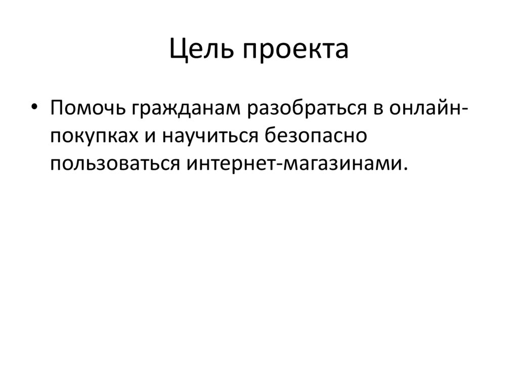 Цель проекта• Помочь гражданам разобраться в онлайнпокупках и научиться безопасно