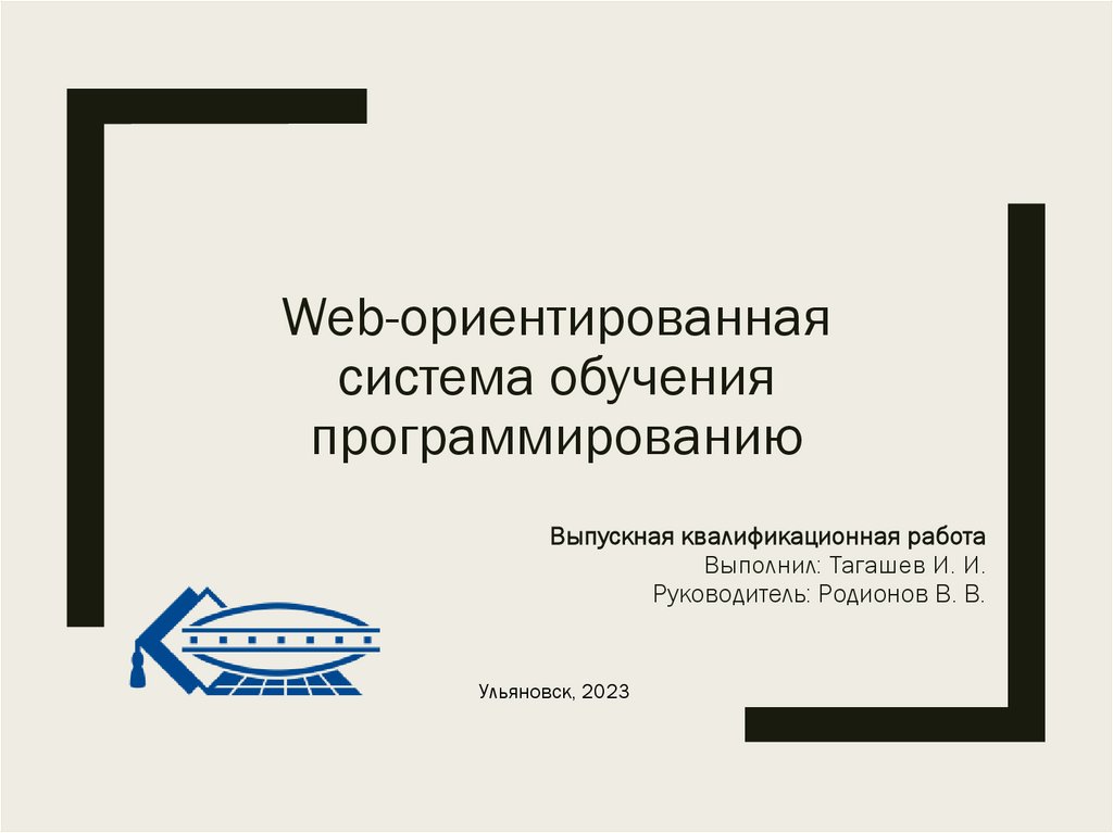 Выпускная квалификационная работаВыполнил: Тагашев И. И.