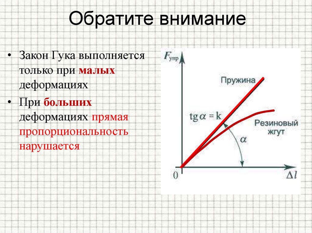 • Чем больше усилие, сжимающее пружину, тембольше ее деформация