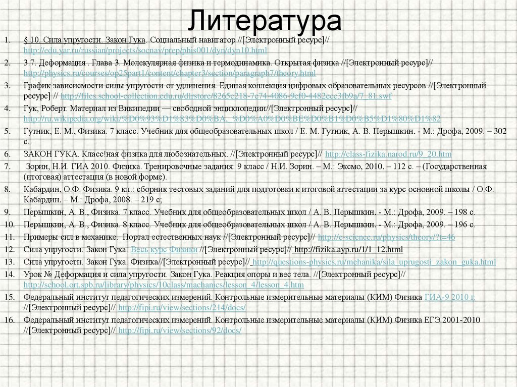 § 10. Сила упругости. Закон Гука. Социальный навигатор //[Электронный ресурс]//http://edu.yar.ru/russian/projects/socnav/prep/phis001/dyn/dyn10.html