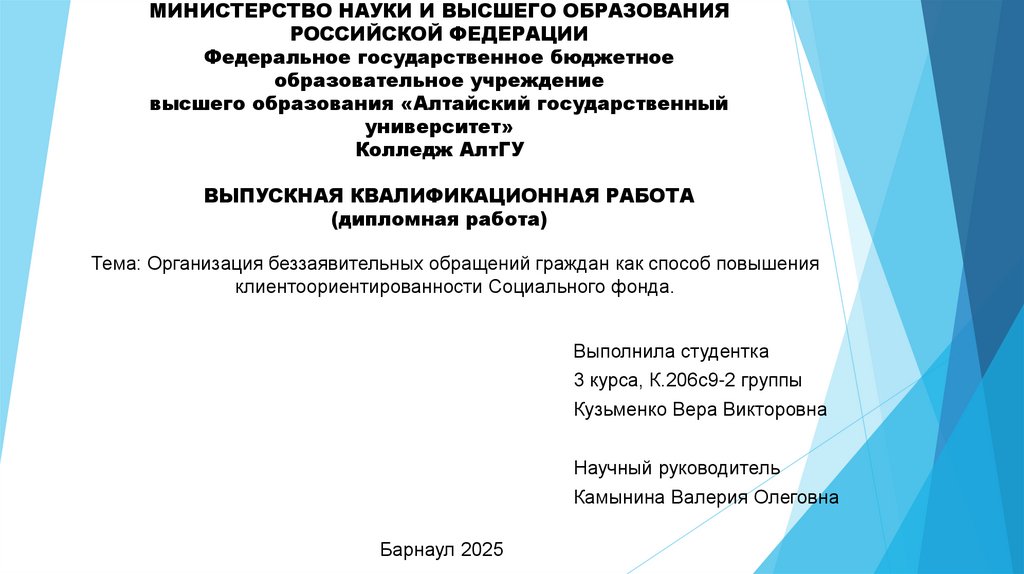 1. МИНИСТЕРСТВО НАУКИ И ВЫСШЕГО ОБРАЗОВАНИЯ РОССИЙСКОЙ ФЕДЕРАЦИИ Федеральное государственное бюджетное образовательное учреждение