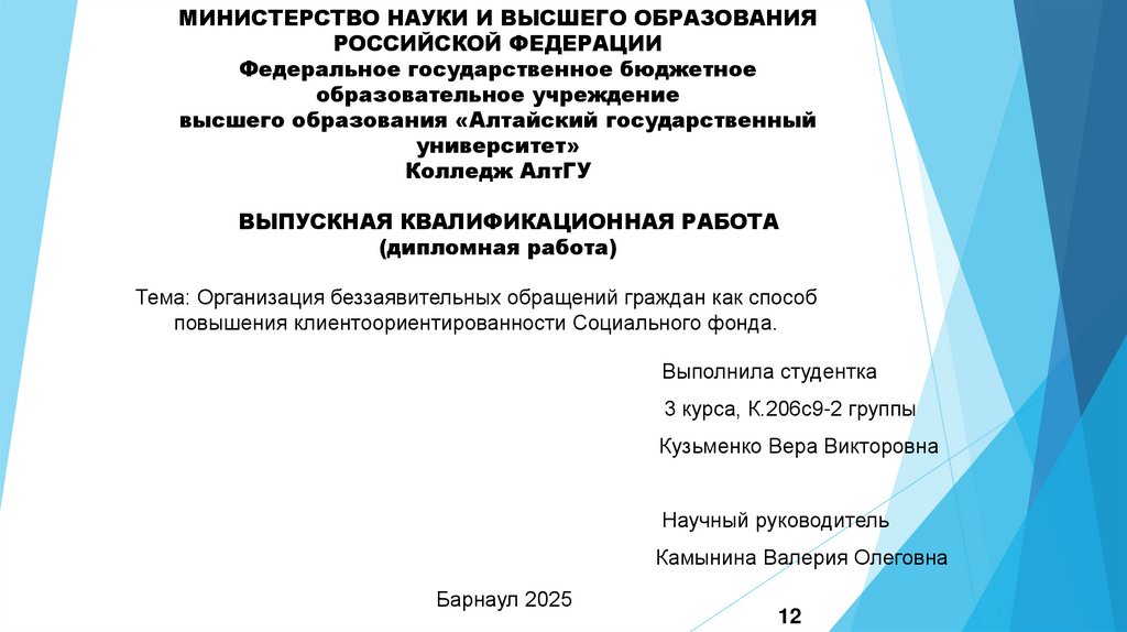 12. МИНИСТЕРСТВО НАУКИ И ВЫСШЕГО ОБРАЗОВАНИЯ РОССИЙСКОЙ ФЕДЕРАЦИИ Федеральное государственное бюджетное образовательное учреждение