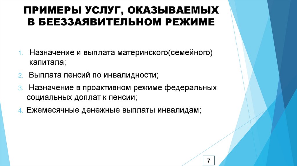 7. ПРИМЕРЫ УСЛУГ, ОКАЗЫВАЕМЫХ В БЕЕЗЗАЯВИТЕЛЬНОМ РЕЖИМЕ