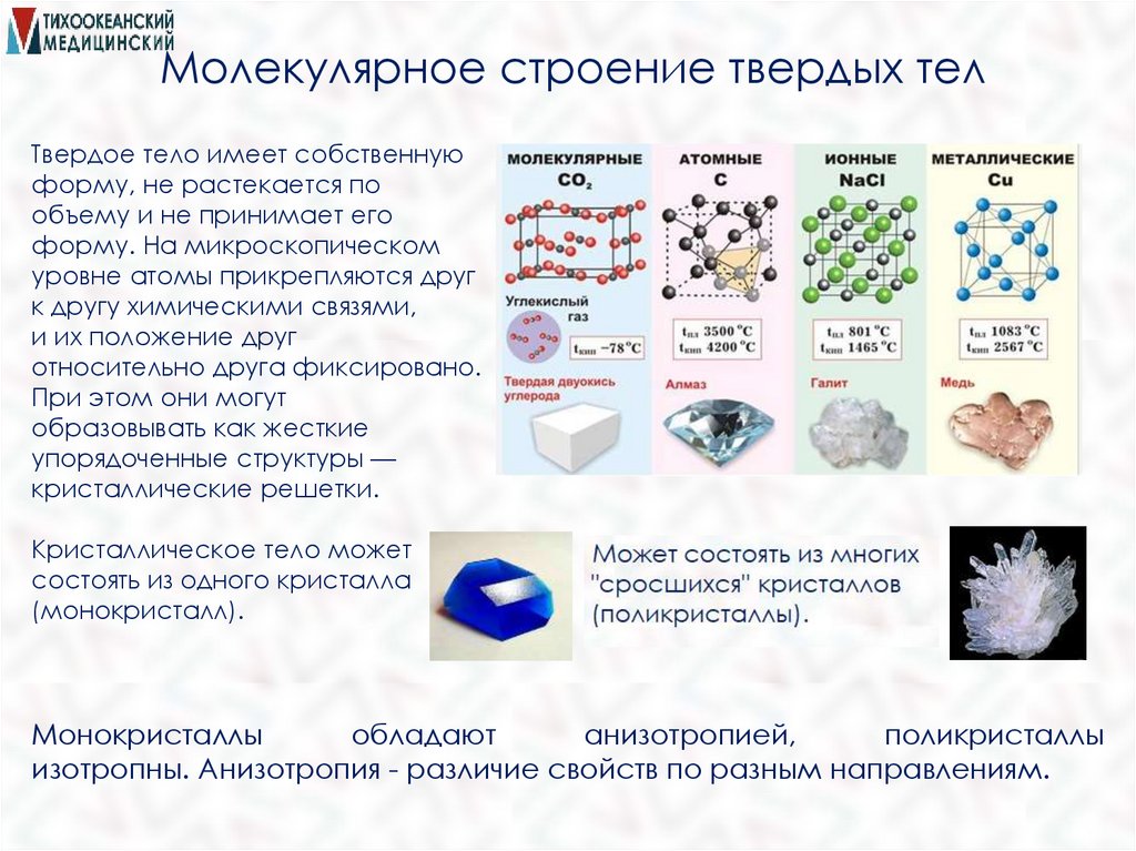 Молекулярное строение твердых телТвердое тело имеет собственную