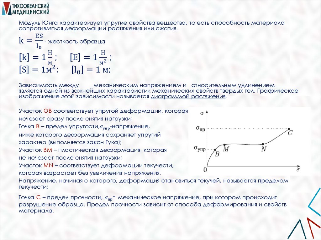 Модуль Юнга характеризует упругие свойства вещества, то есть способность материаласопротивляться деформации растяжения или сжатия.