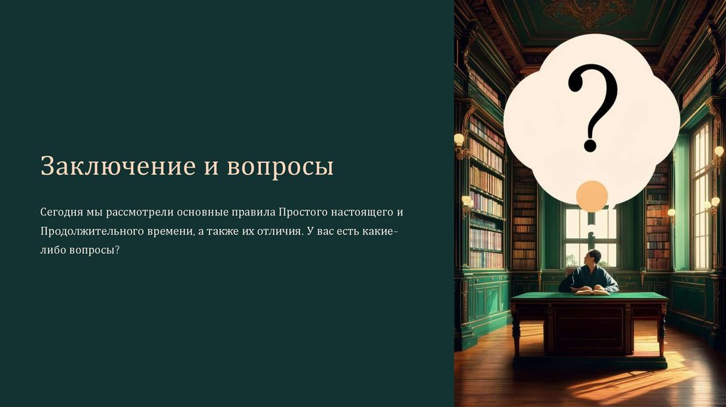 Заключение и вопросыСегодня мы рассмотрели основные правила Простого настоящего и