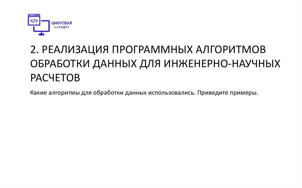 2. РЕАЛИЗАЦИЯ ПРОГРАММНЫХ АЛГОРИТМОВОБРАБОТКИ ДАННЫХ ДЛЯ ИНЖЕНЕРНО-НАУЧНЫХ
