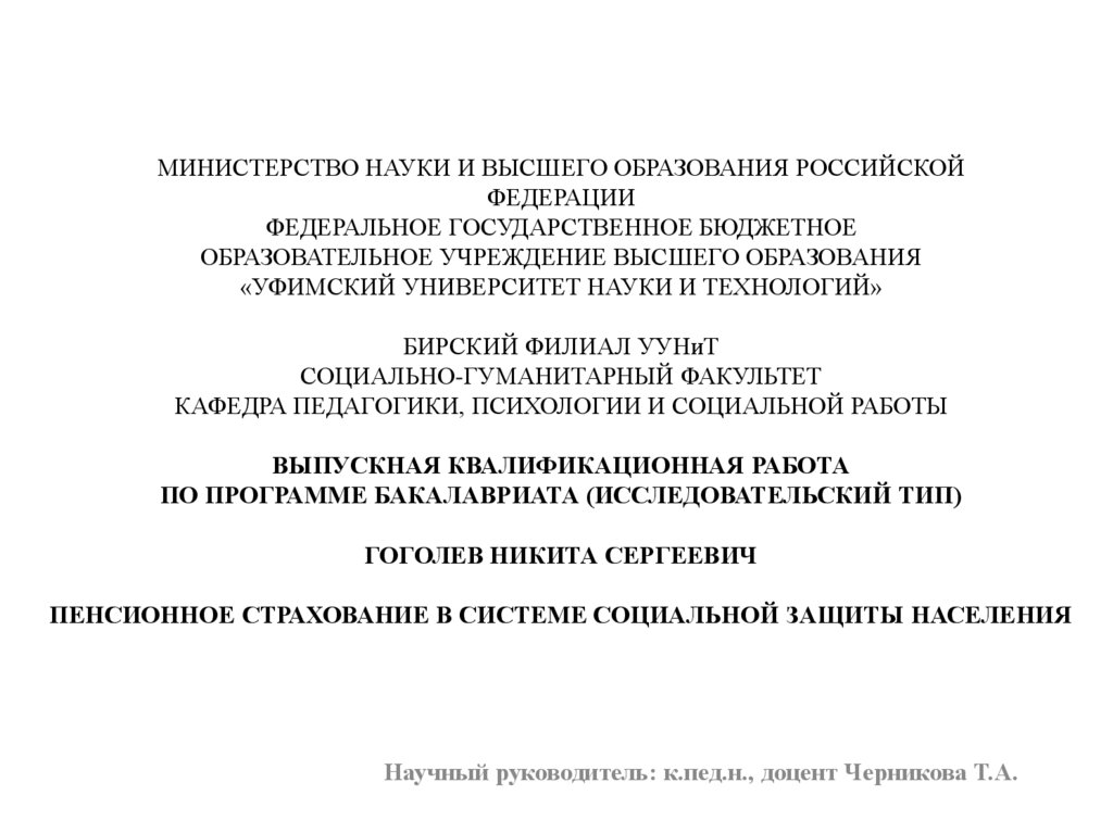 ВЫСШЕГО ОБРАЗОВАНИЯ«УФИМСКИЙ УНИВЕРСИТЕТ НАУКИ И ТЕХНОЛОГИЙ»