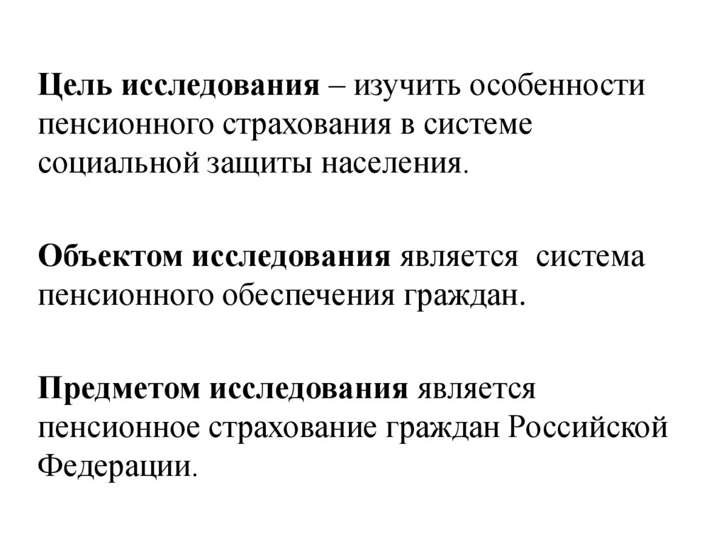 Цель исследования – изучить особенностипенсионного страхования в системе