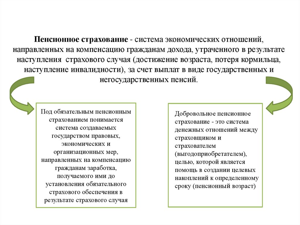 Пенсионное страхование - система экономических отношений,направленных на компенсацию гражданам дохода, утраченного в результате