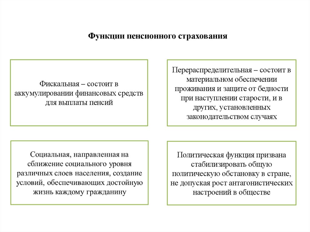 Функции пенсионного страхованияФискальная – состоит в