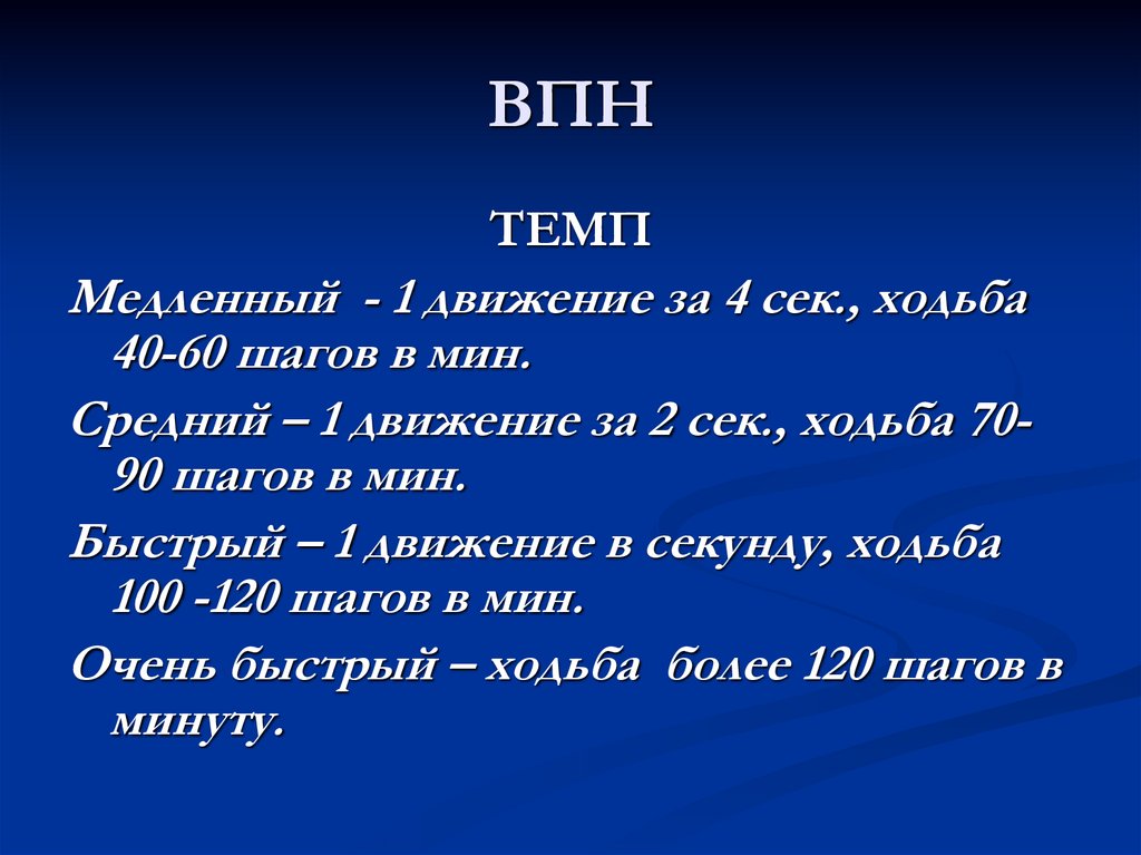 ТЕМПМедленный - 1 движение за 4 сек., ходьба