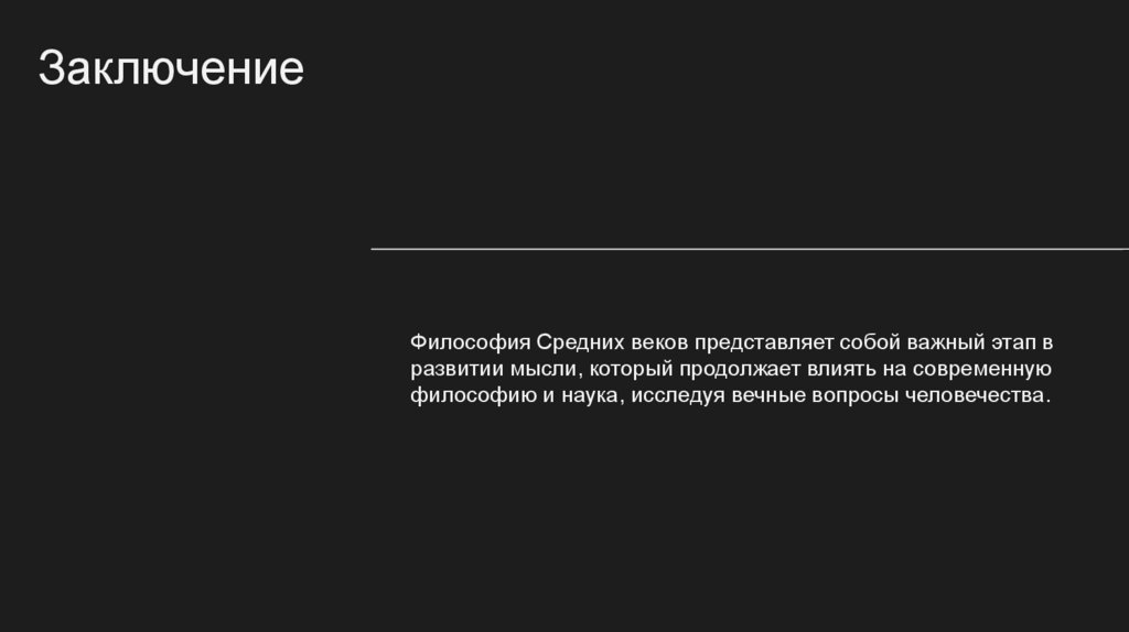 ЗаключениеФилософия Средних веков представляет собой важный этап в