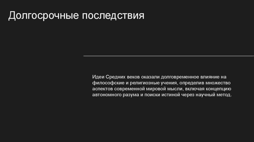 Долгосрочные последствияИдеи Средних веков оказали долговременное влияние на