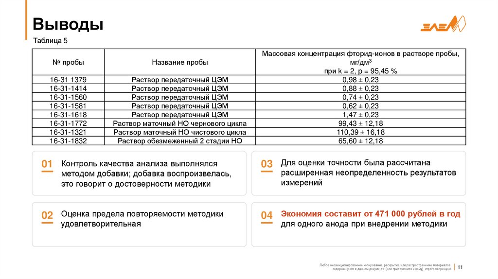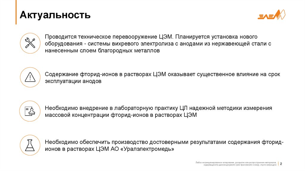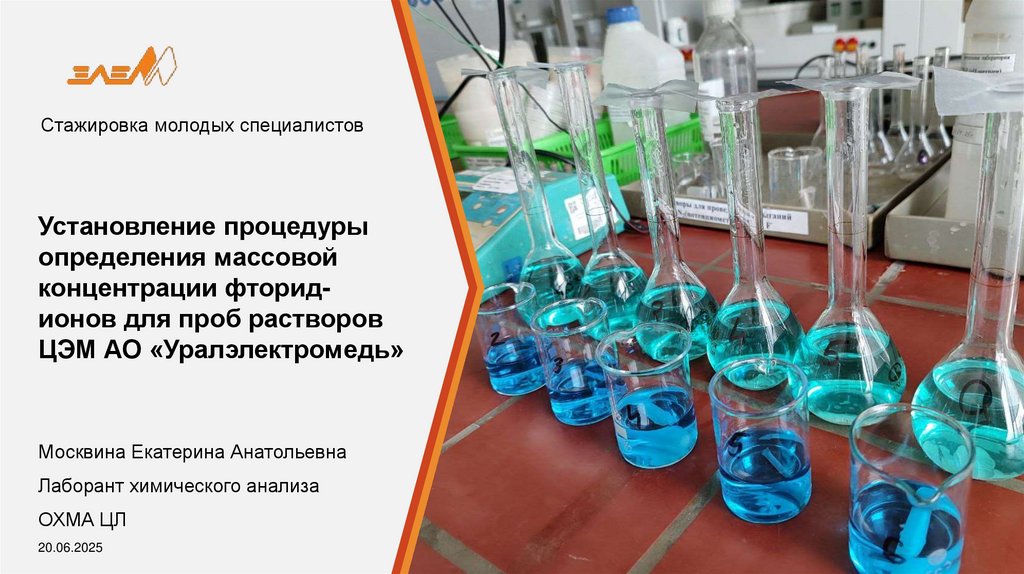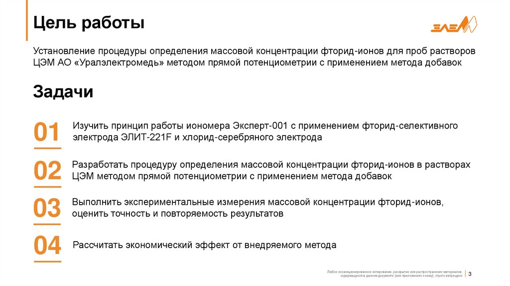 3. Цель работы Установление процедуры определения массовой концентрации фторид-ионов для проб растворов ЦЭМ АО «Уралэлектромедь»