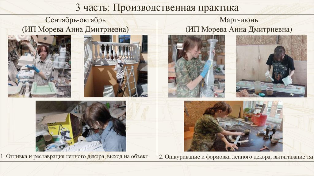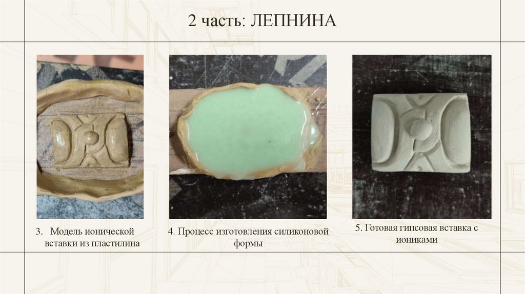 2. Ошкуривание и формовка лепного декора, вытягивание тяг