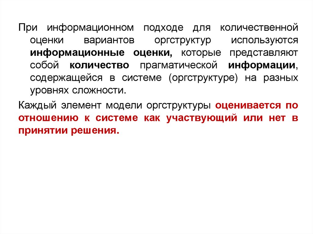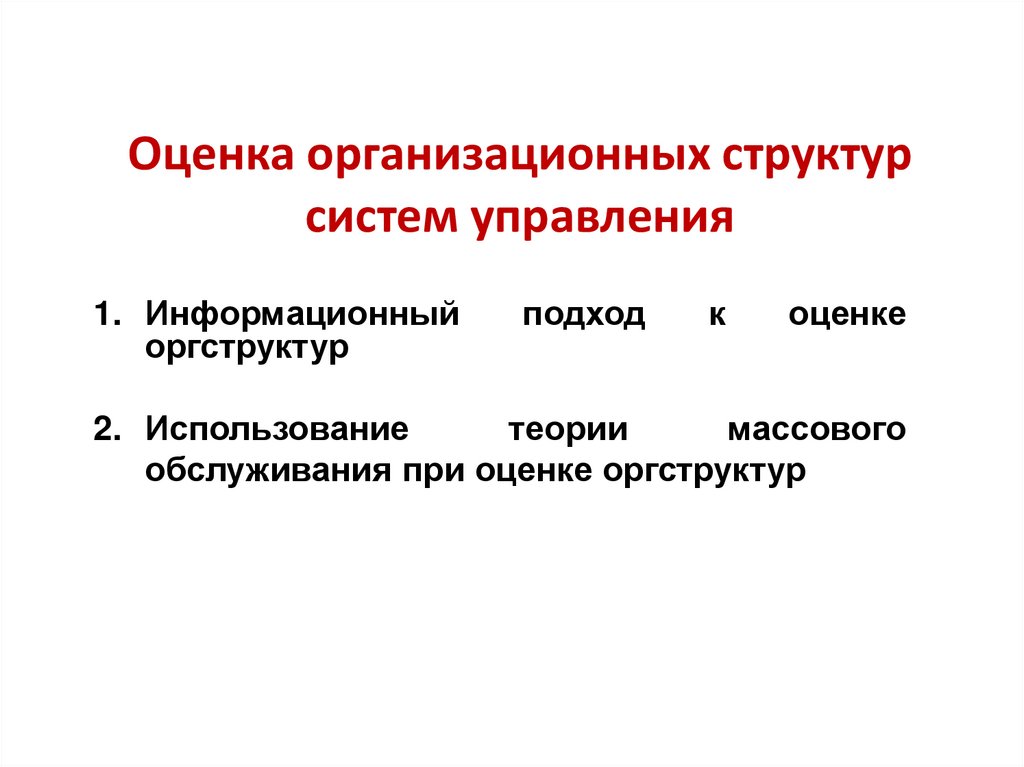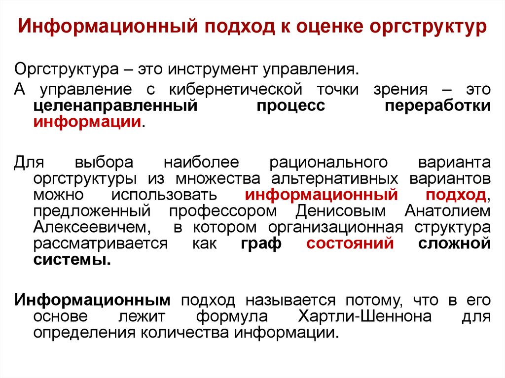 Информационный подход к оценке оргструктурОргструктура – это инструмент управления.