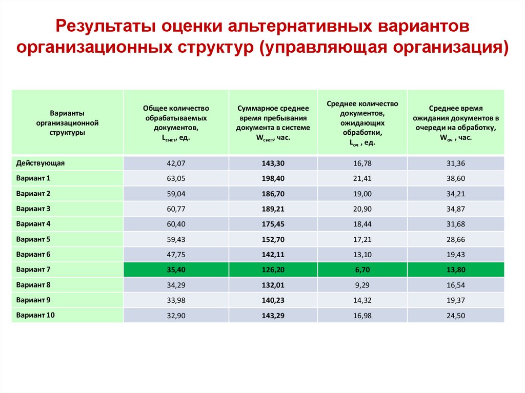 Результаты оценки альтернативных вариантоворганизационных структур (управляющая организация)