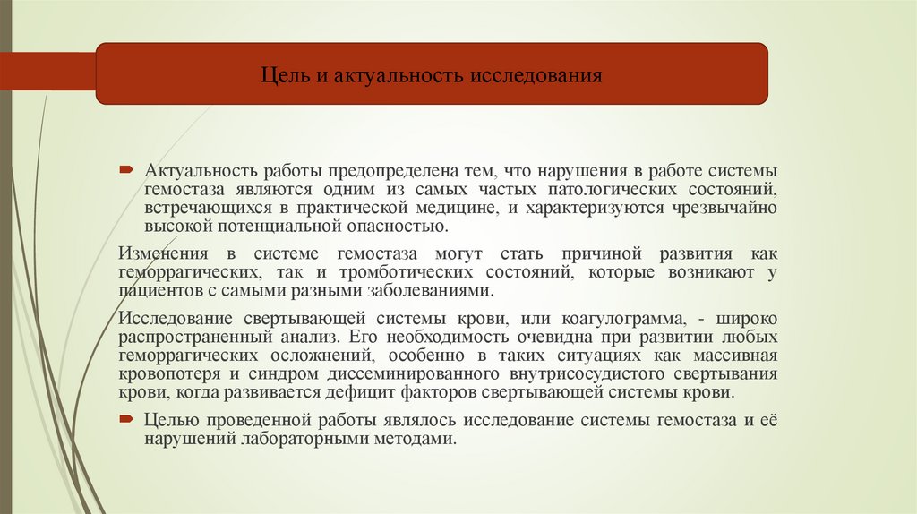 Исследование системы гемостаза и её нарушений лабораторными методами