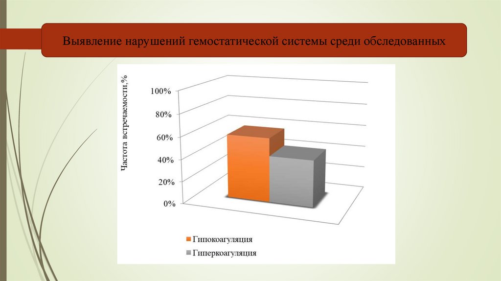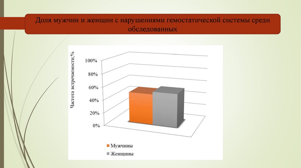 Доля мужчин и женщин с нарушениями гемостатической системы средиобследованных