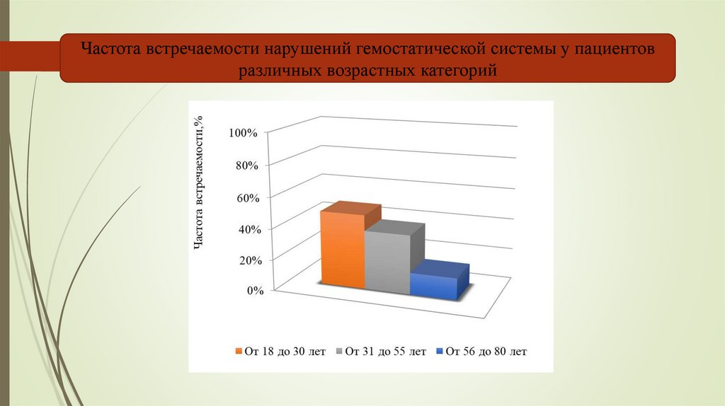 Частота встречаемости нарушений гемостатической системы у пациентовразличных возрастных категорий