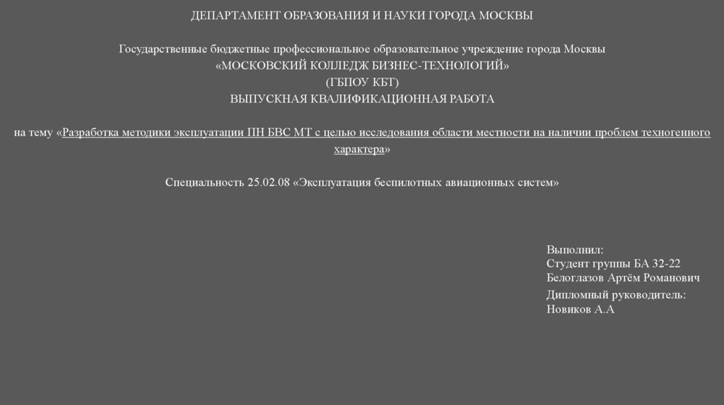на тему «Разработка методики эксплуатации ПН БВС МТ с целью исследования области местности на наличии проблем техногенного