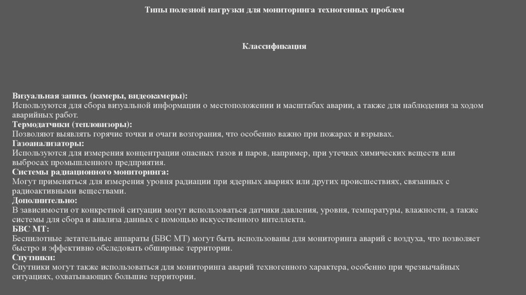 3. Типы полезной нагрузки для мониторинга техногенных проблем