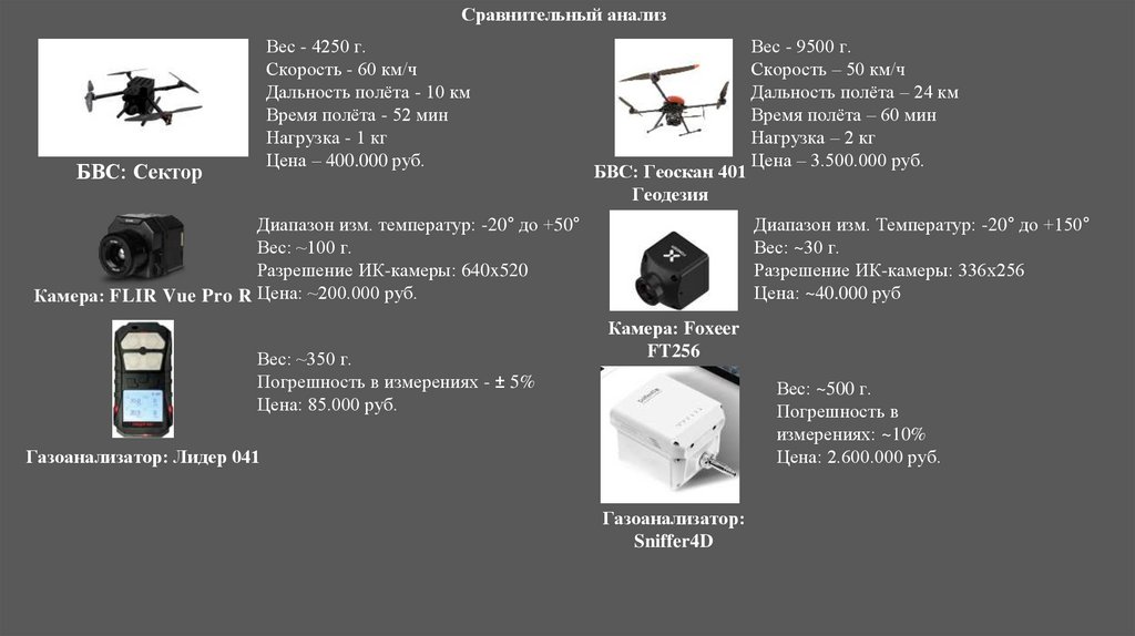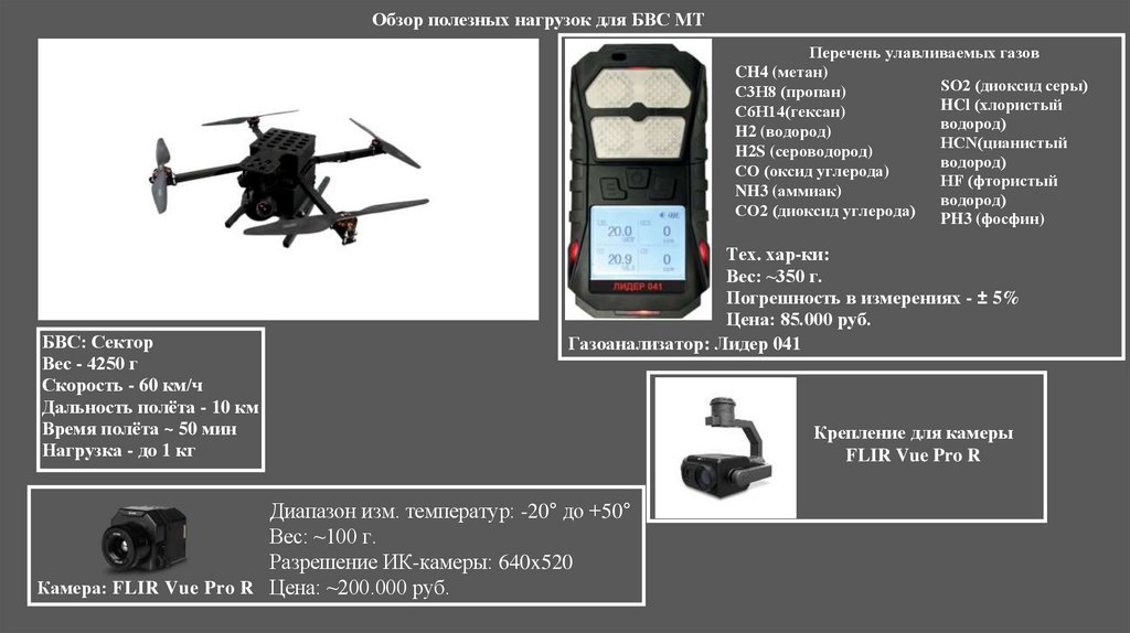 • Провести анализ существующих типов полезной нагрузки, применяемой на БВС МТ для мониторинга техногенных