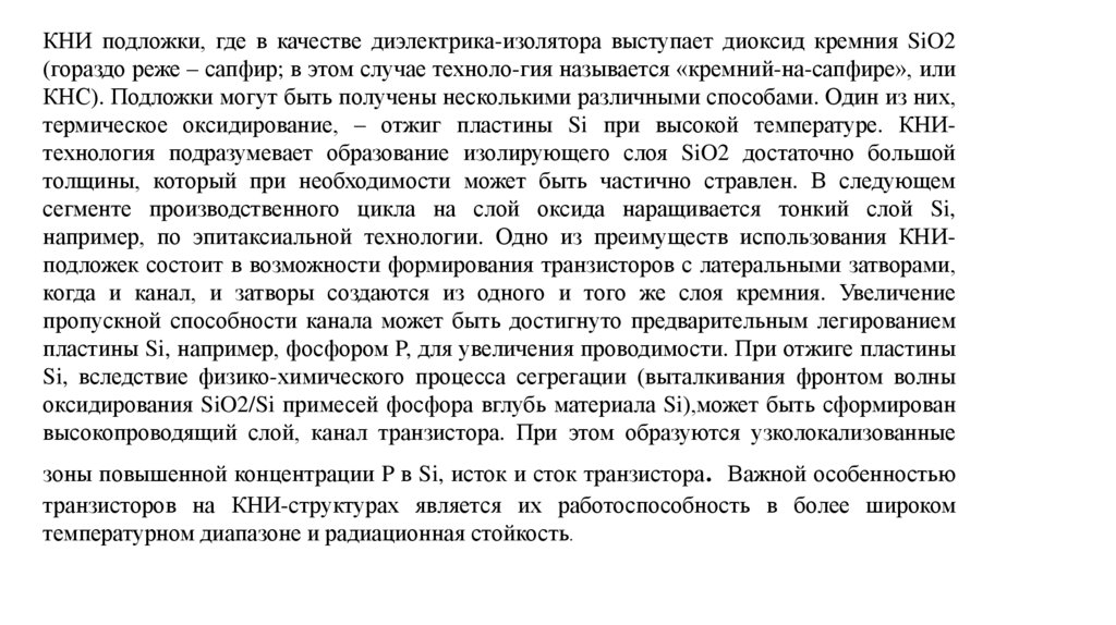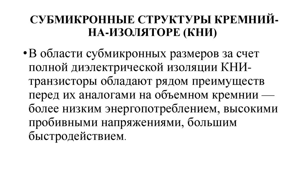Нанотранзисторы2. СУБМИКРОННЫЕ СТРУКТУРЫ КРЕМНИЙ-НА-ИЗОЛЯТОРЕ (КНИ)