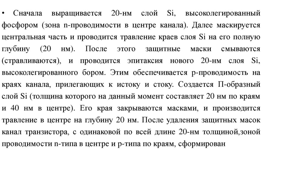 канал транзистора, с одинаковой по всей длине 20-нм толщиной,зоной