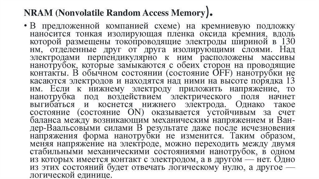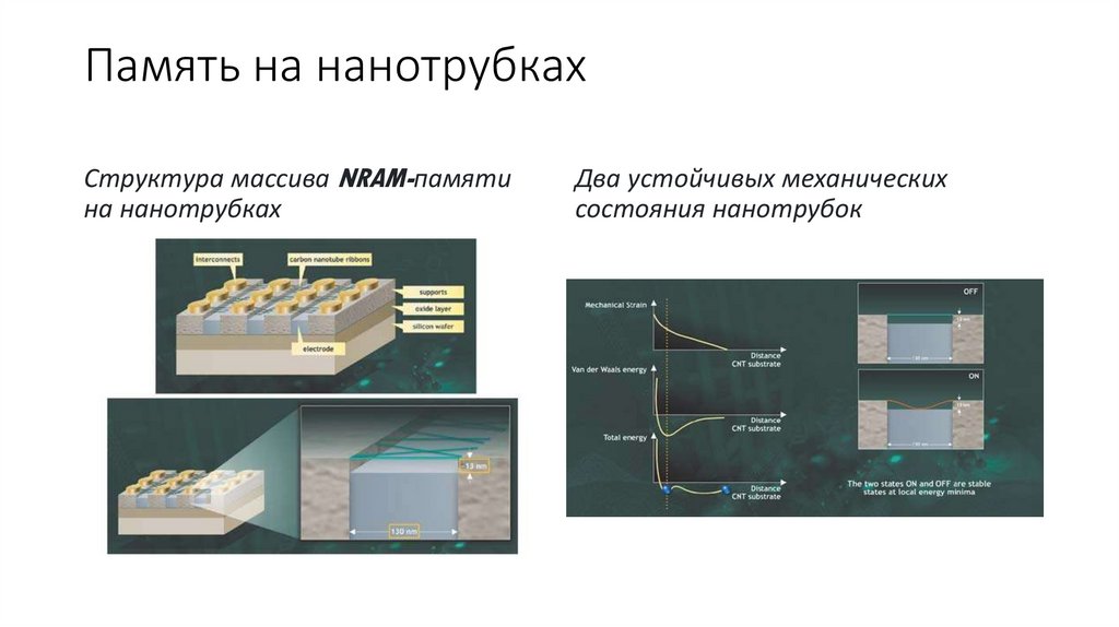 контакты. В обычном состоянии (состояние OFF) нанотрубки не