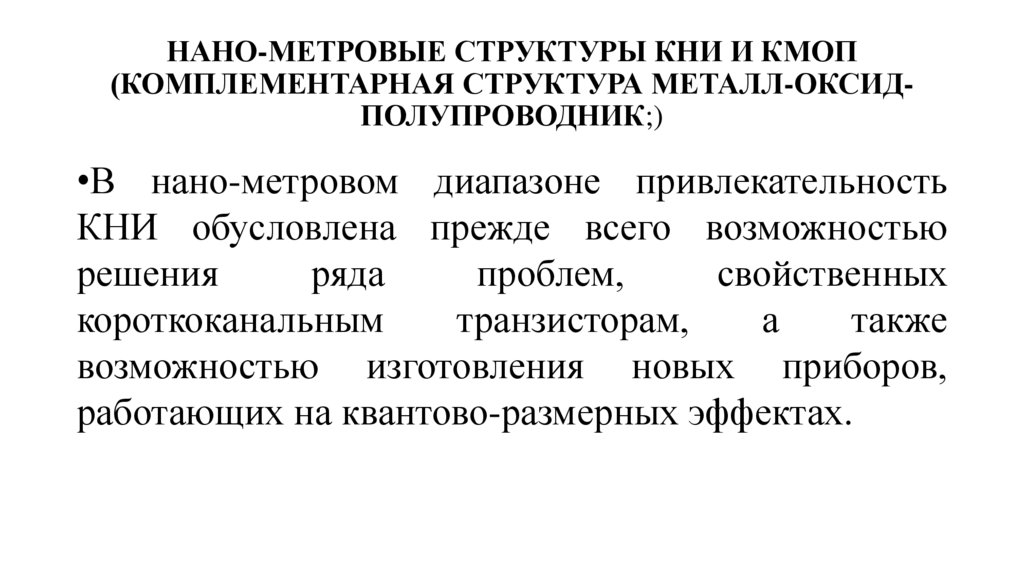 НАНО-МЕТРОВЫЕ СТРУКТУРЫ КНИ И КМОП(КОМПЛЕМЕНТАРНАЯ СТРУКТУРА МЕТАЛЛ-ОКСИДПОЛУПРОВОДНИК;)