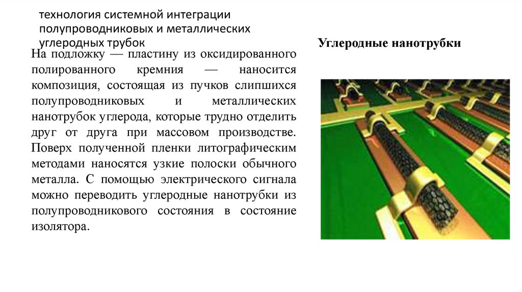 8. технология системной интеграции полупроводниковых и металлических углеродных трубок