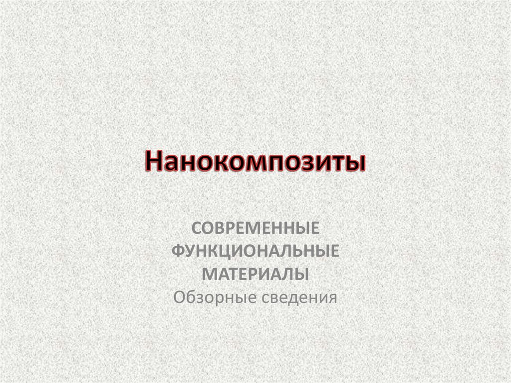 Нанокомпозиты. Современные функциональные материалы. Обзорные сведения