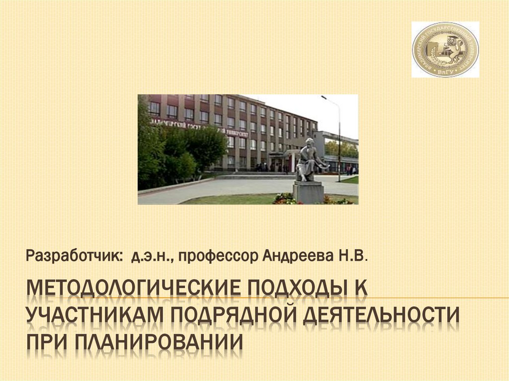 Разработчик: д.э.н., профессор Андреева Н.В.МЕТОДОЛОГИЧЕСКИЕ ПОДХОДЫ К