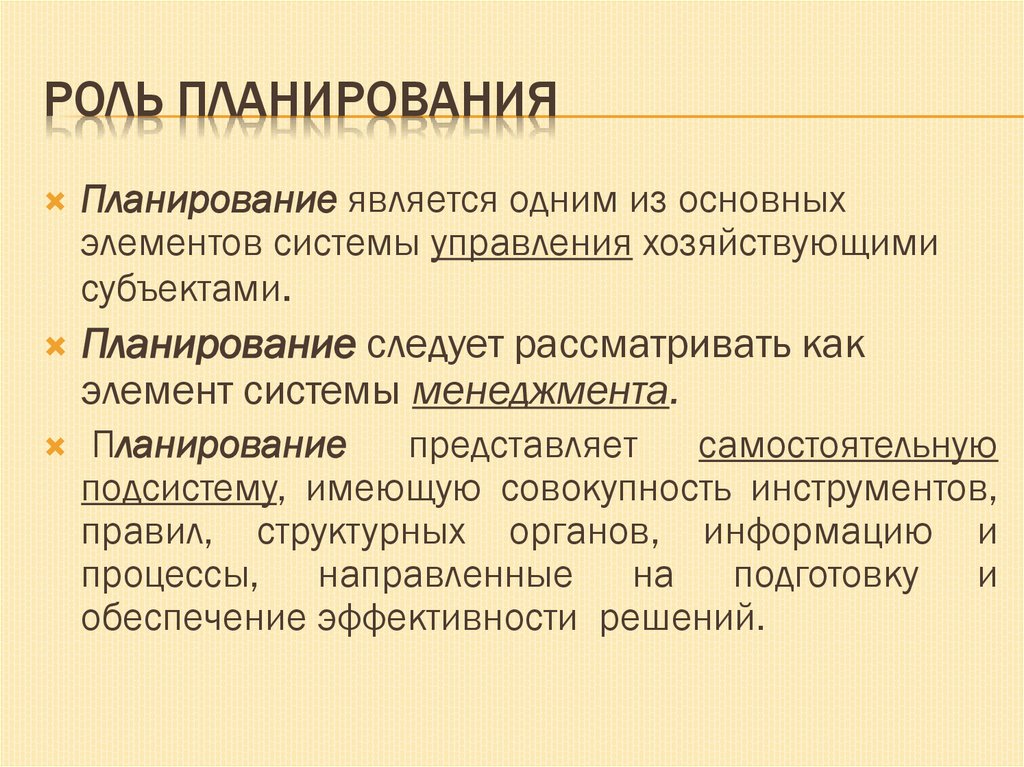 2. Роль планирования