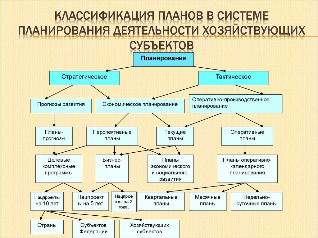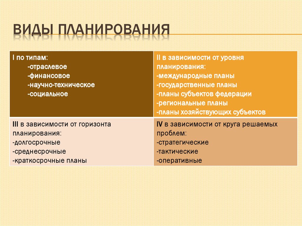 ВИДЫ ПЛАНИРОВАНИЯI по типам: