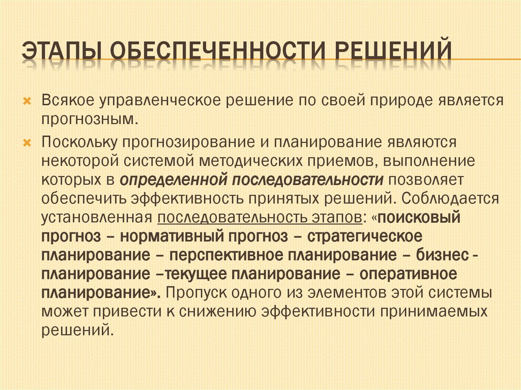 ЭТАПЫ ОБЕСПЕЧЕННОСТИ РЕШЕНИЙВсякое управленческое решение по своей природе является