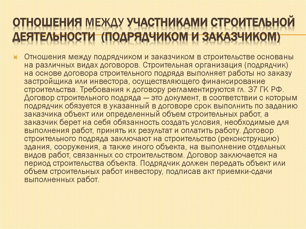 Методологические подходы к участникам подрядной деятельности при планировании