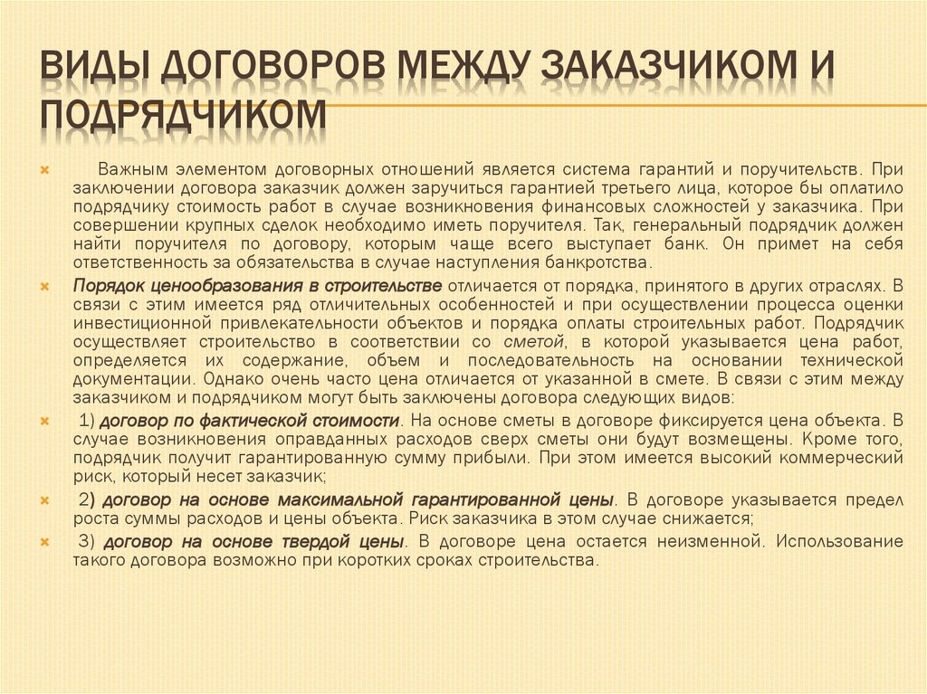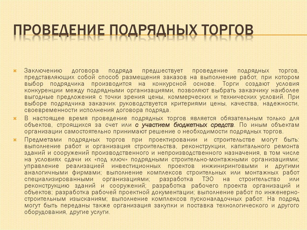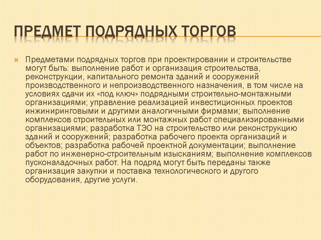 ПРЕДМЕТ ПОДРЯДНЫХ ТОРГОВПредметами подрядных торгов при проектировании и строительстве