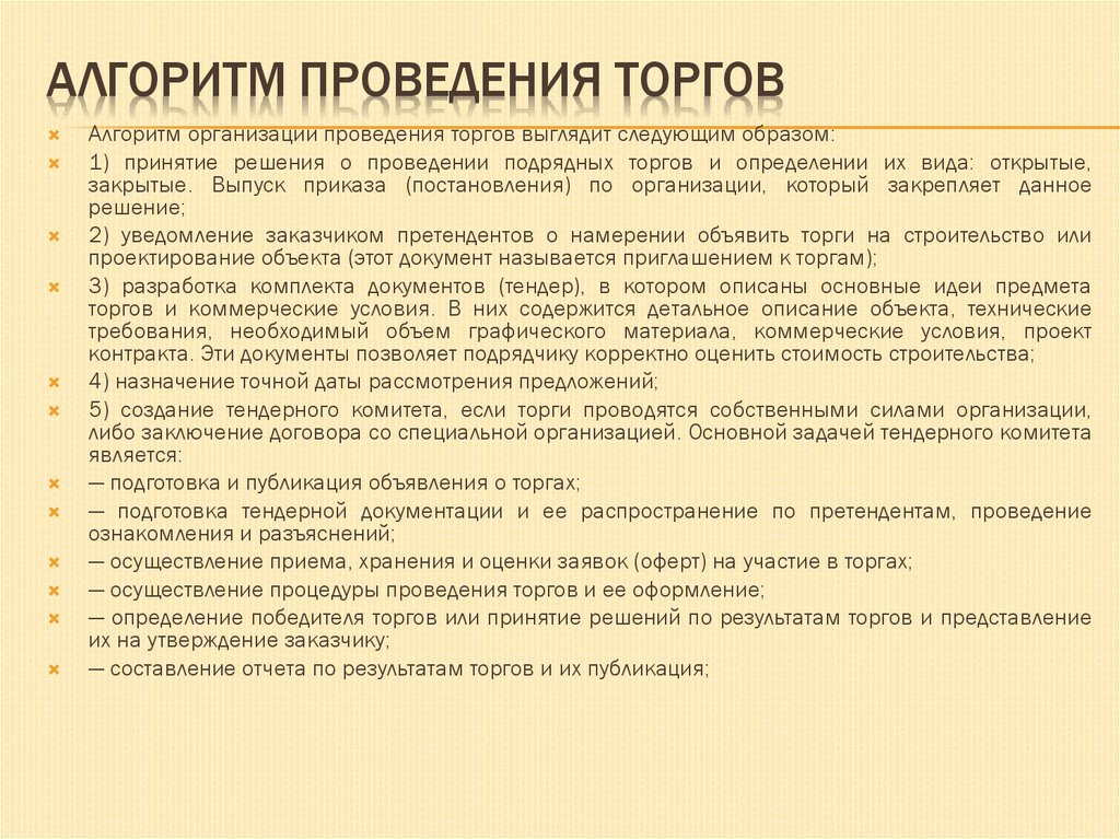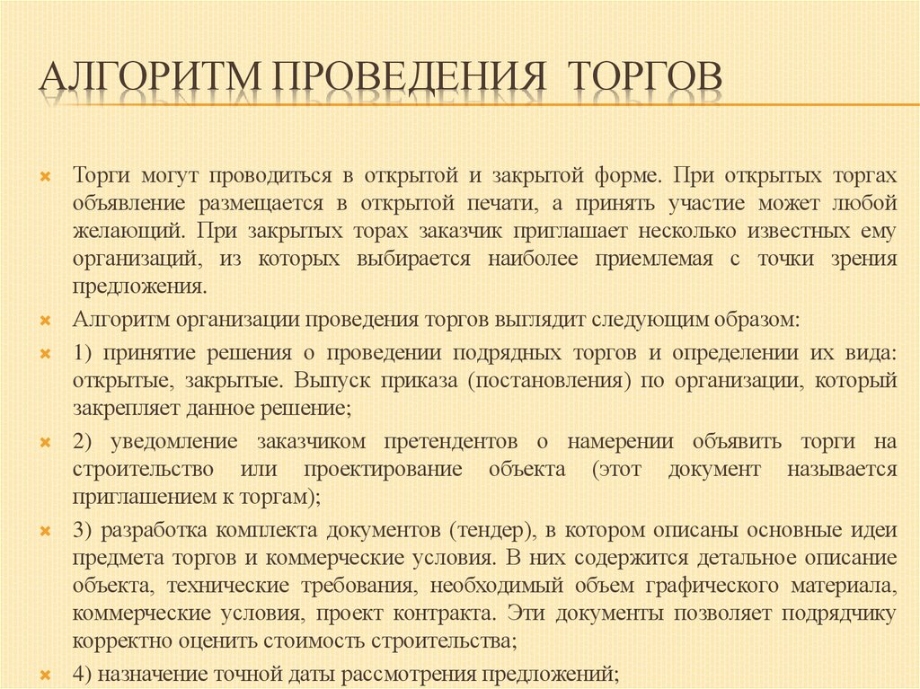 37. Алгоритм проведения торгов