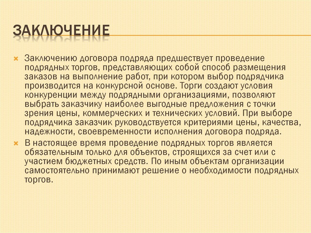 Заключению договора подряда предшествует проведениеподрядных торгов, представляющих собой способ размещения